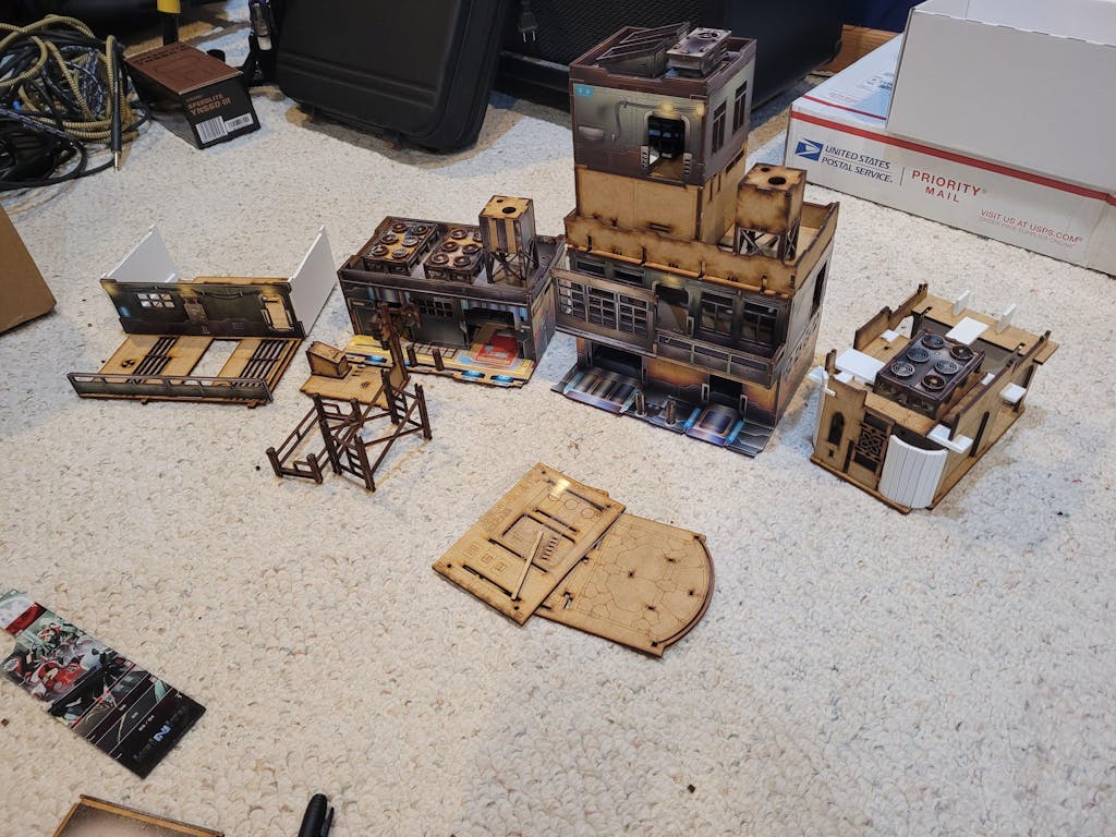 There are parts of buildings and terrain, and may include full legitimate pieces of scenery! Great for scratch-builders and terrain converters. As well as acrylic that has all sorts of cool pieces to add color and detail to terrain pieces, great for kit-bashers. Hammer not included. You might get a miscut template, or you may get a bunch of scrap acrylic in all sorts of fun colors. Careful those edges can be sharp!